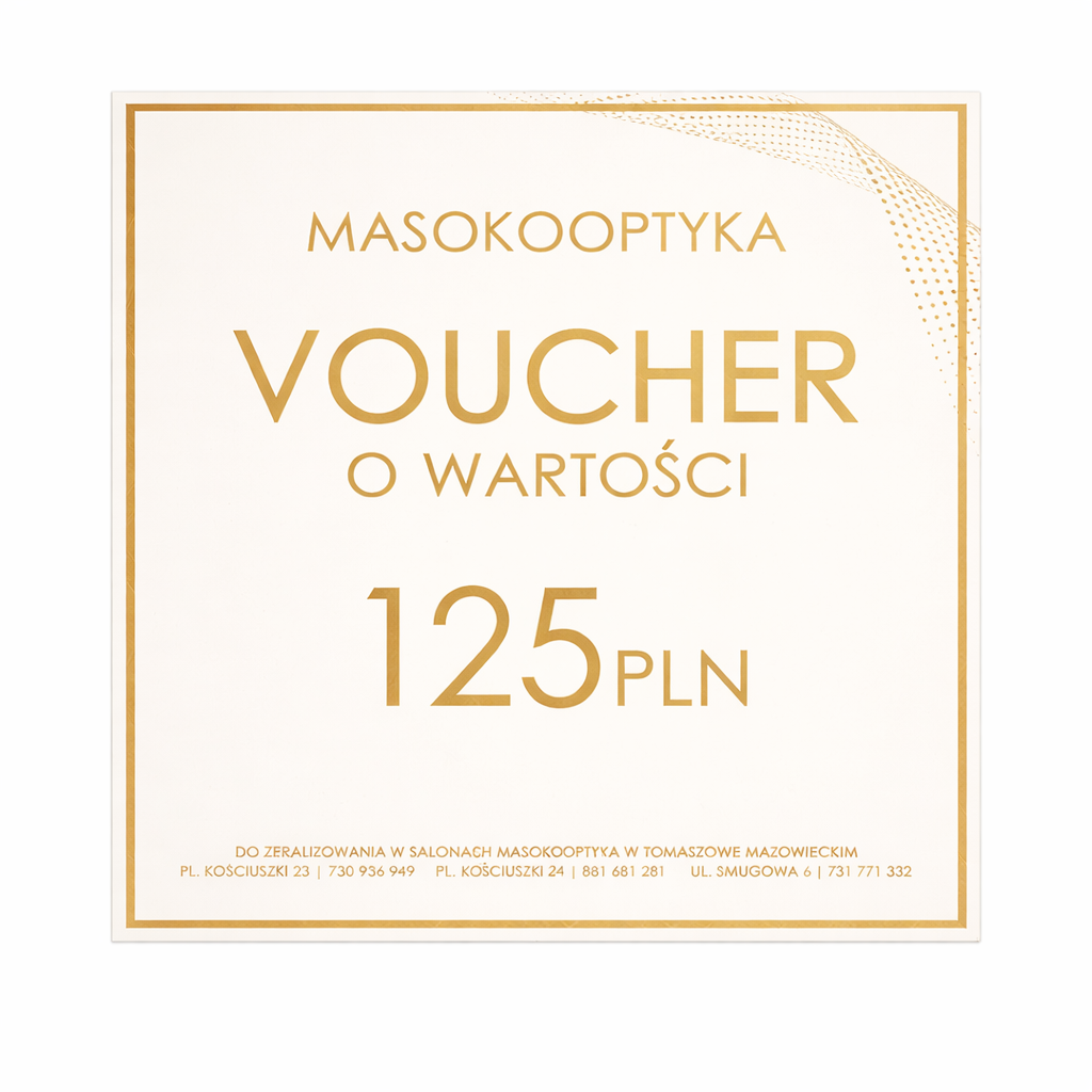 Voucher Podarunkowy Masokooptyka o wartości 125 zł to idealny wybór dla każdego, kto dba o swój wzrok i wygląd.